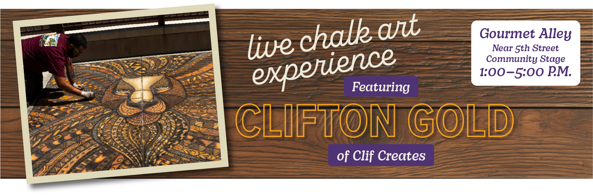 Clifton Gold of Clif Creates will transform Gourmet Alley into a vibrant, large-scale work of art—created right before your eyes.